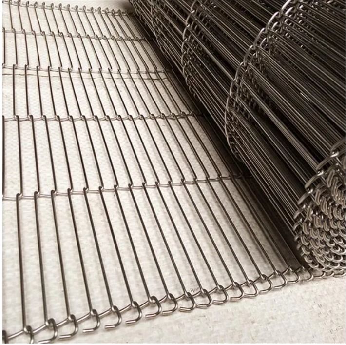 | Nom | Bande transporteuse à mailles en fil d'acier à haute teneur en carbone pour enrobage de chocolat - Flat Flex |