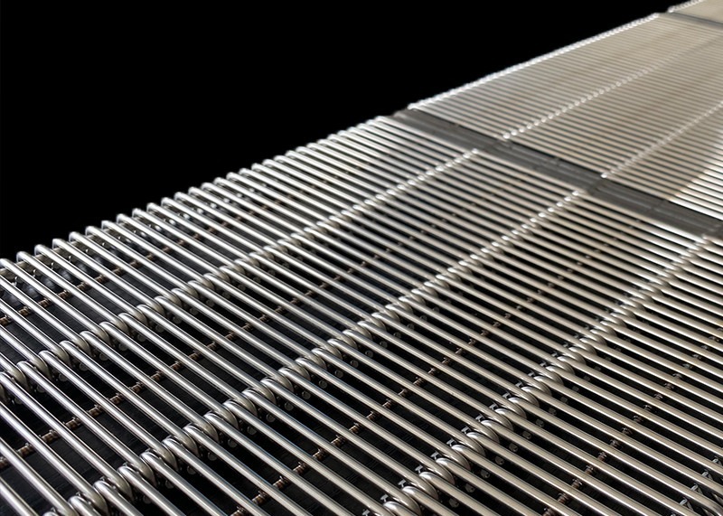 Le tapis en treillis métallique a une construction de courroie à tissage double équilibré et est un assemblage de paires de spirales droites et gauches correctement espacées par des connecteurs sertis. C'est l'un des tapis roulants métalliques les plus économiques et les plus largement utilisés au monde. Il présente les caractéristiques d'une excellente flexibilité, d'une forte tolérance, d'une surface plane et lisse. Il peut donc être utilisé dans de nombreuses usines et zones.