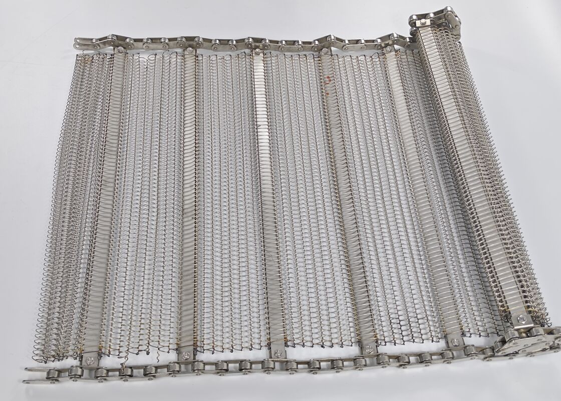 Type de bande transporteuse en maille de chaîne avec de nombreuses conceptions de maille, qui peut être utilisé dans presque toutes les industries manufacturières. Fonctionnement en ligne droite, excellent rapport résistance/poids et une grande variété de spécifications de maille pour s'adapter à certaines applications individuelles, comme les tunnels de surgélation, IQF, surgélateurs, congélateurs à air pulsé.
